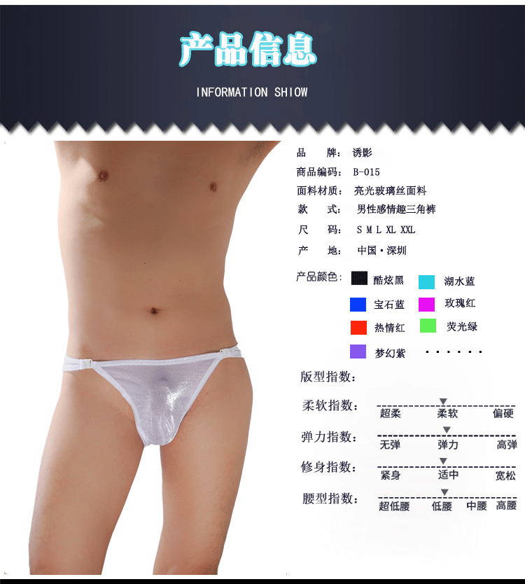 油光超弹面料男士内裤宽边舒适腰带低腰情趣内裤半透明P-019
