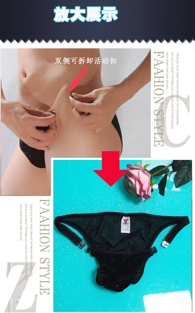 男士宽腰边蕾丝内裤U凸单T双T男性感丁字内裤S-001