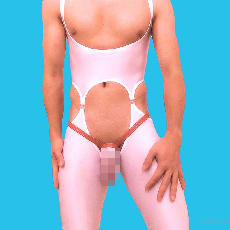 前后开裆油光高弹面料男女情侣内衣,露臀搭扣7分裤长紧身连体衣L-060