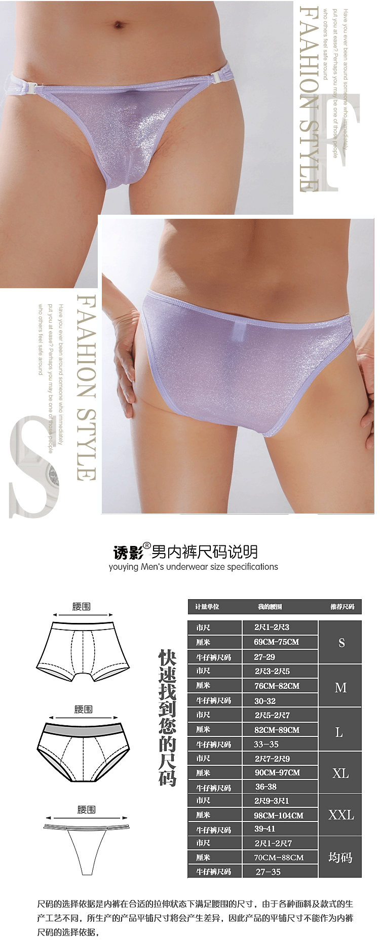 诱影透明男士内裤 二边活动搭扣尽显无限激情 M-012