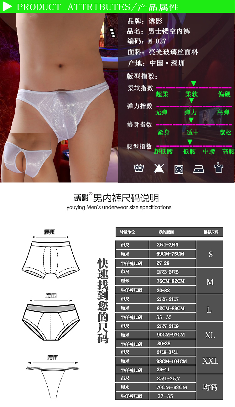 后面带扣玻璃丝男士内裤 透明情趣男士内衣 M-027