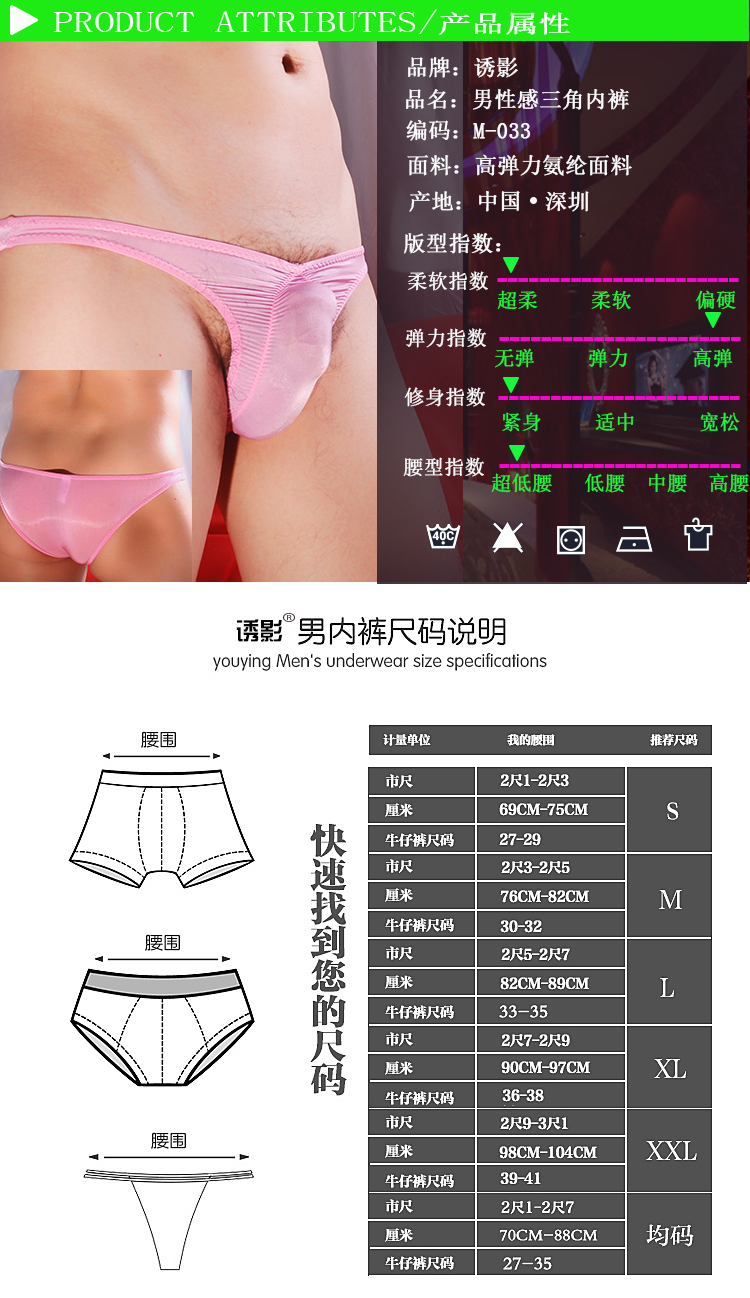 油光超弹面料男士内裤宽边舒适腰带低腰情趣内裤半透明P-019