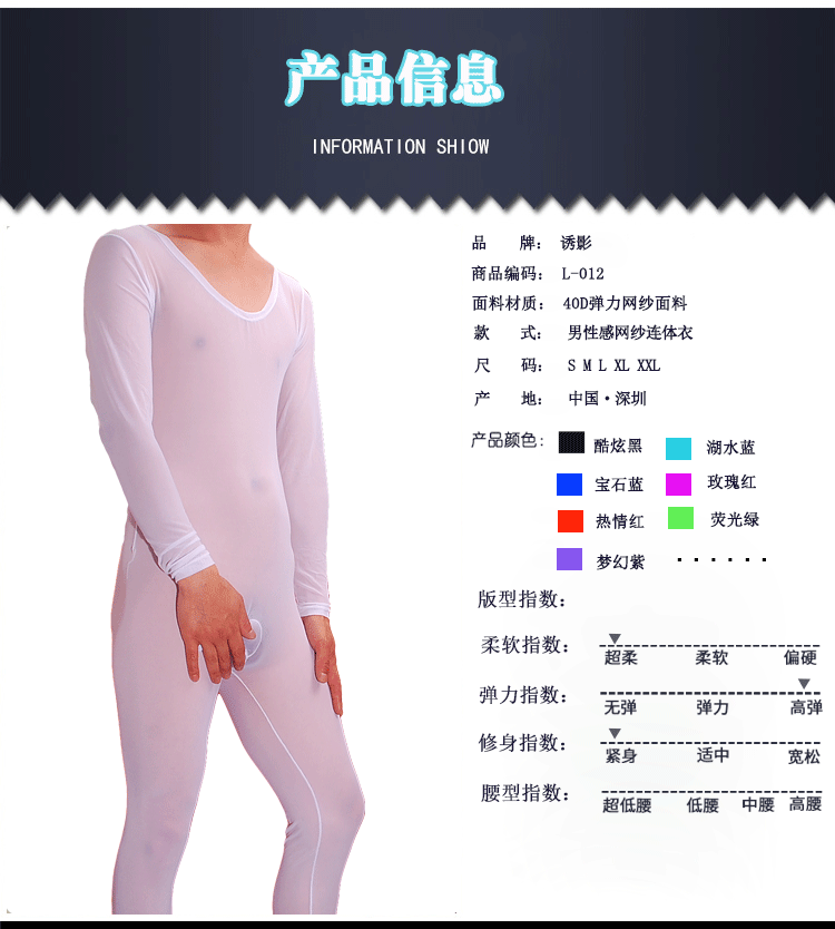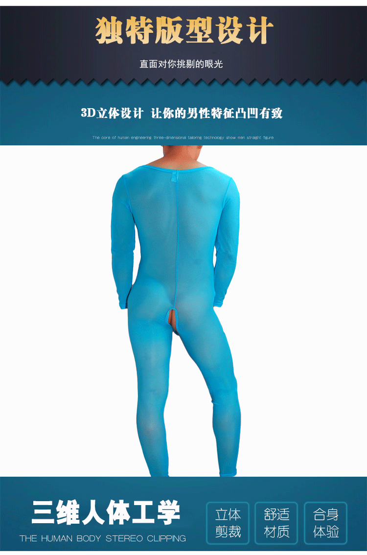 男士套套透明连体长袖内衣 透明性感开裆男内衣 男士性感内衣 情趣男内衣 L-012