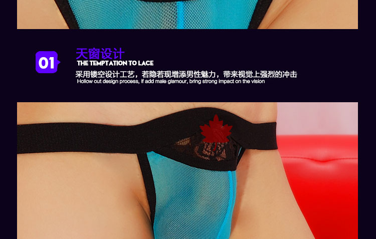 男士宽腰边蕾丝内裤U凸单T双T男性感丁字内裤S-001