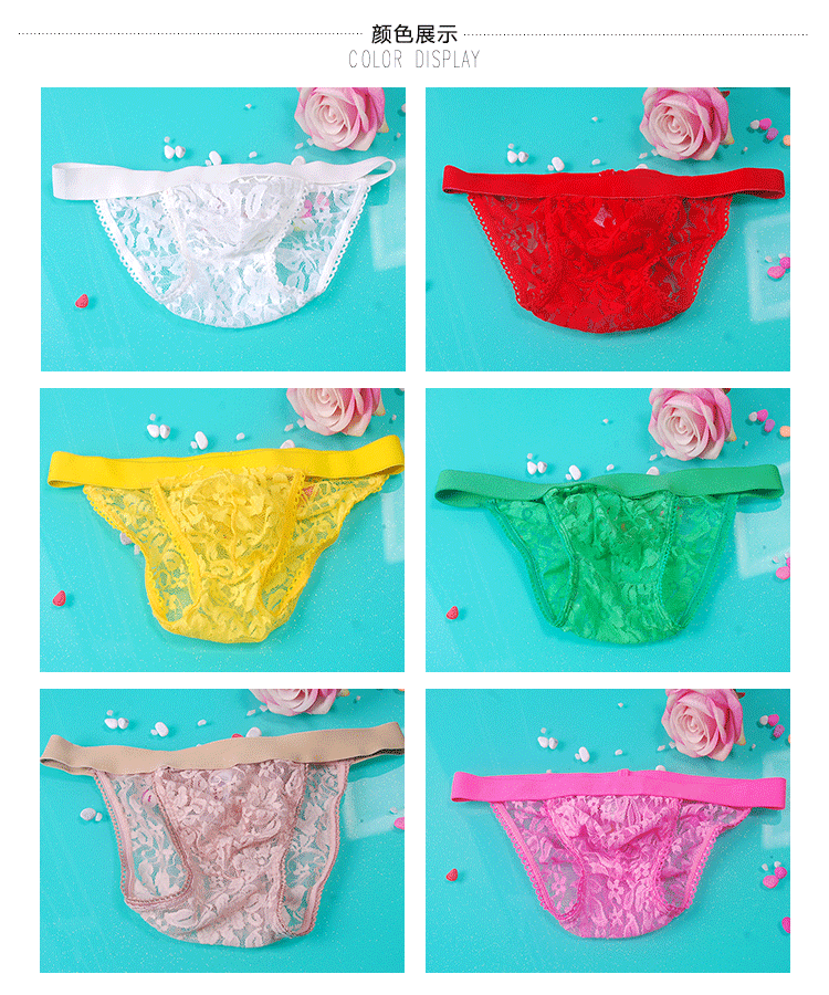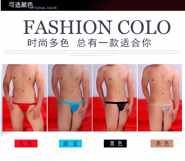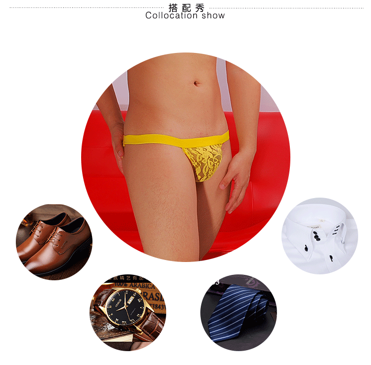 男士宽腰边蕾丝内裤U凸单T双T男性感丁字内裤S-001