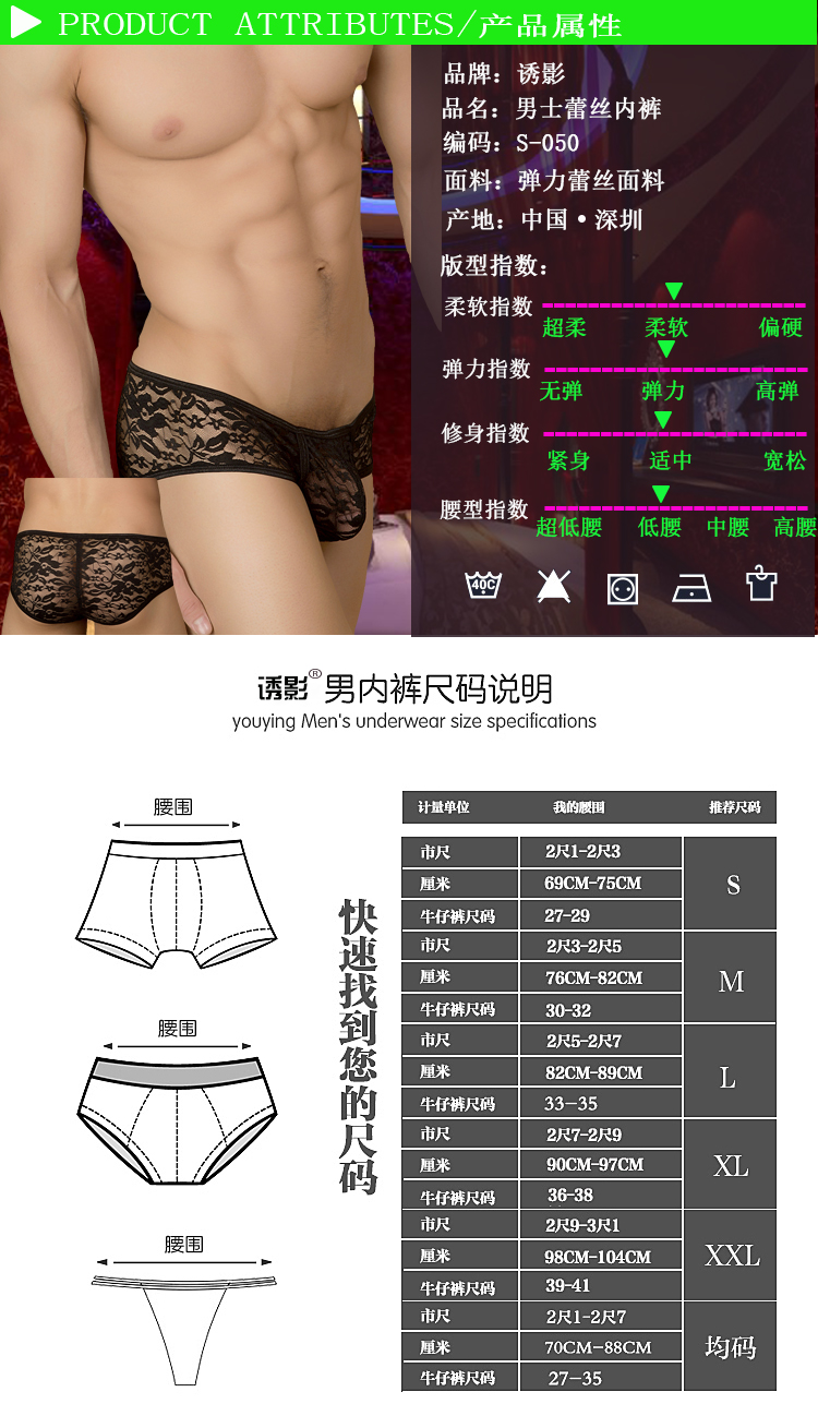 诱影男士性感蕾丝情趣内衣S-047